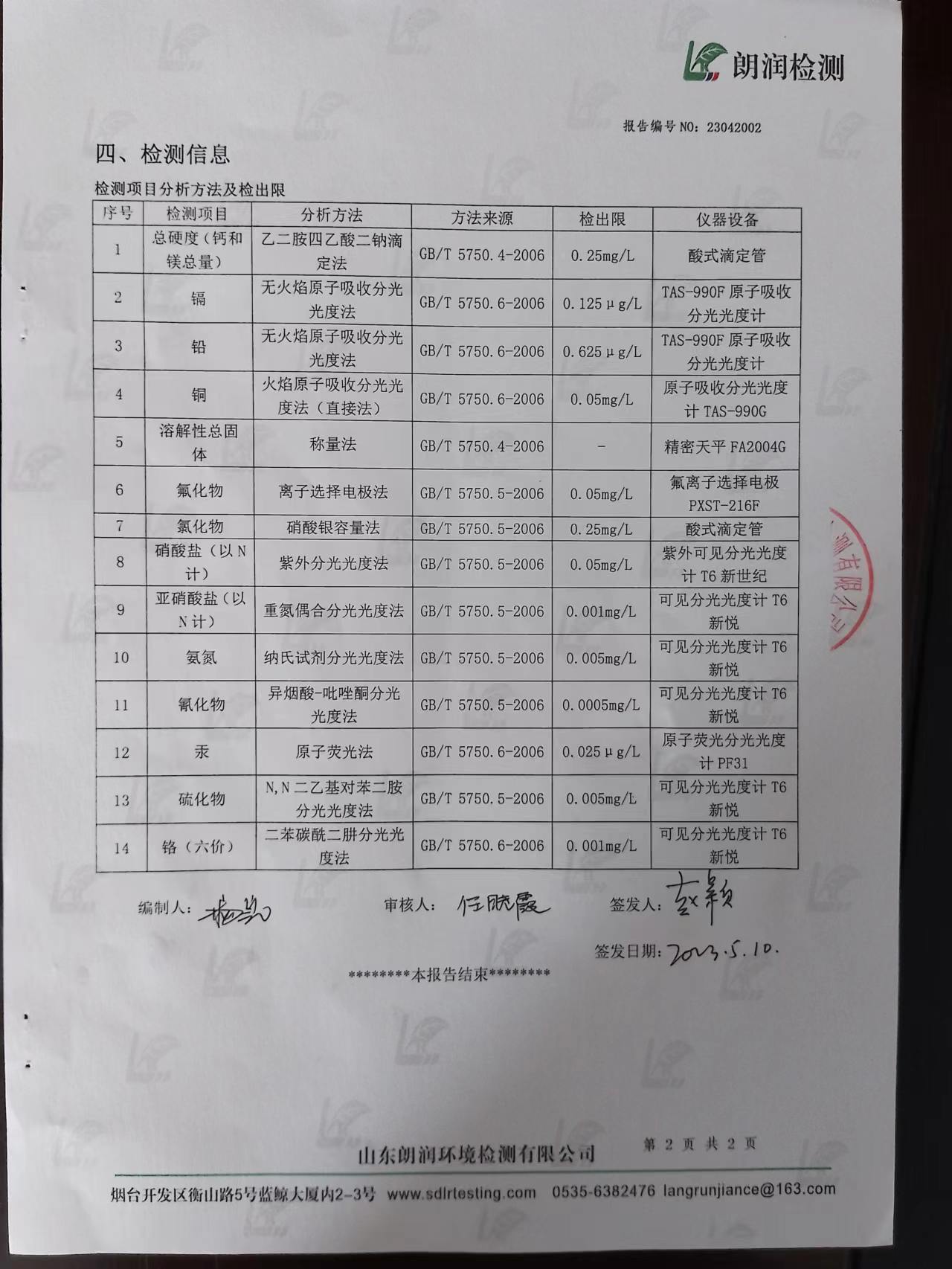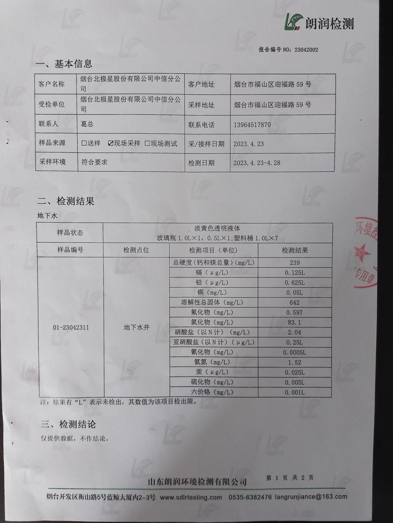 煙臺(tái)北極星工業(yè)園地下水檢測(cè)報(bào)告2023年5月